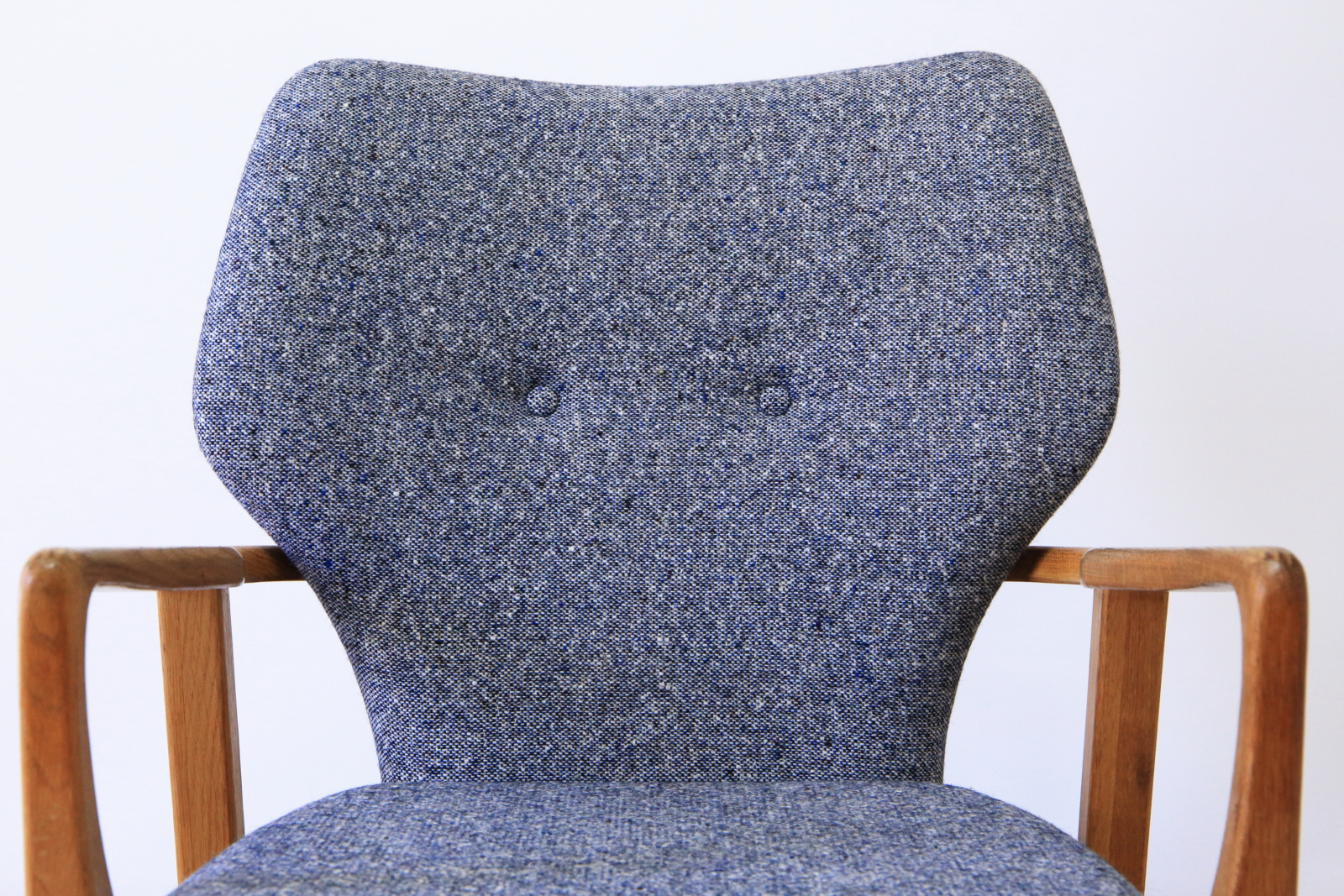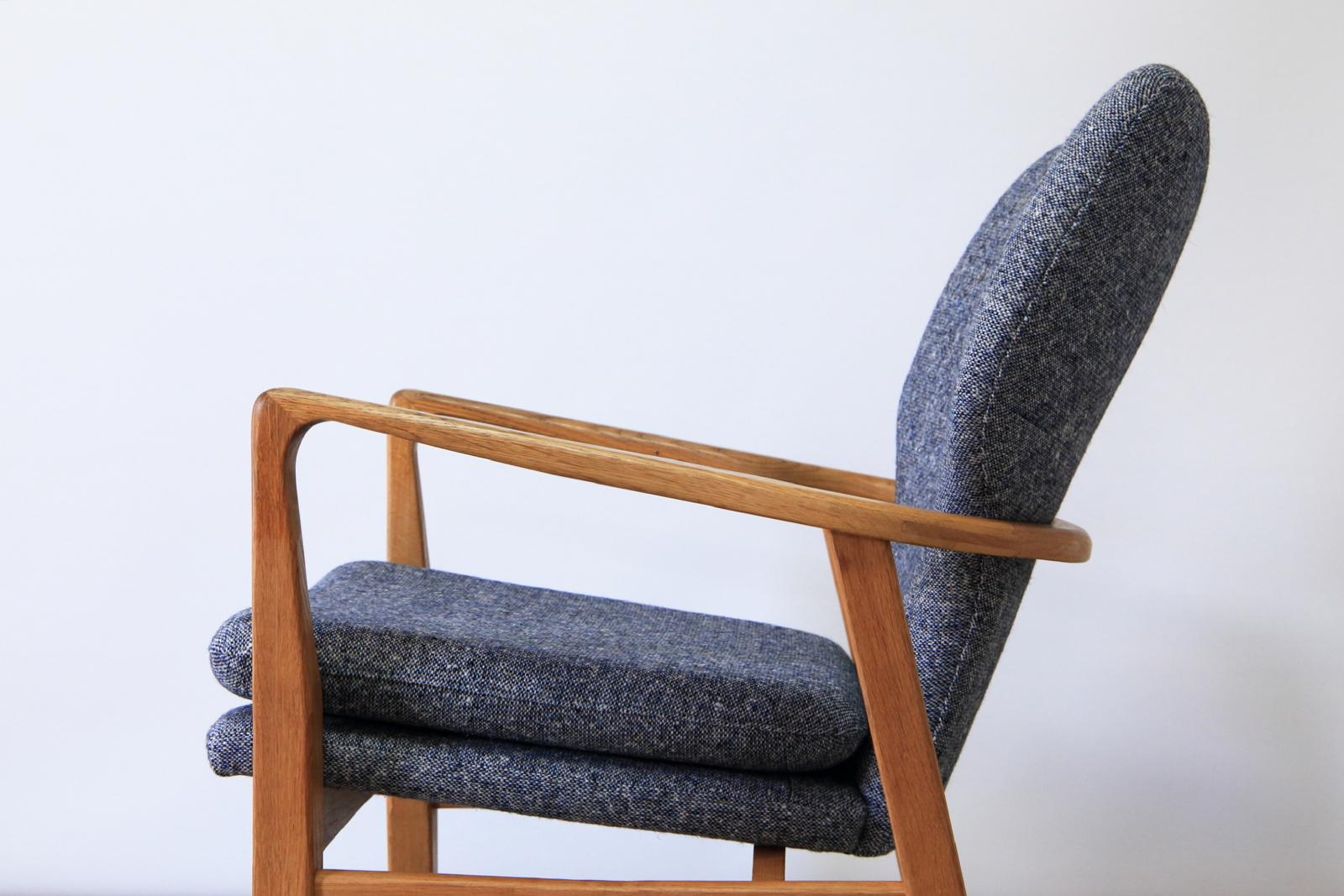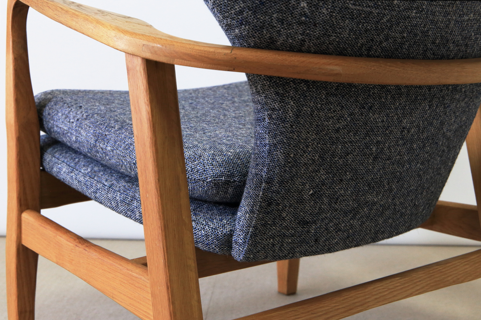 イージーチェア 神戸市北区 イージーチェアの張替え。 背中が広くて安心感のある座り心地。 全体的に厚みを増して、丸みが出るように仕上げました。 お客様支給のブルーの生地で爽やかに。 PREV 一覧 NEXT
